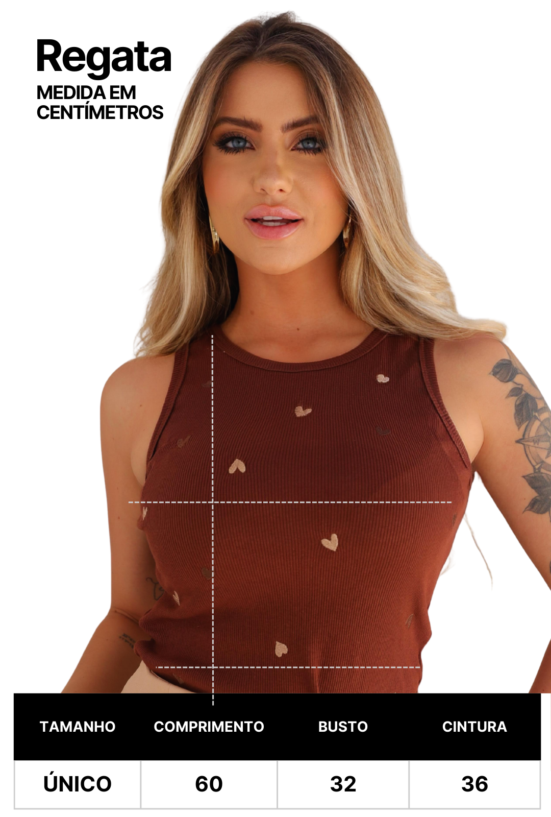 O tecido canelado confere textura e um visual moderno, enquanto o delicado bordado adiciona um charme exclusivo e refinado, tornando esta regata uma peça versátil para diversas ocasiões. Seja para um look casual com jeans ou para composições mais elaboradas, esta blusa traduz estilo e bom gosto com discrição.